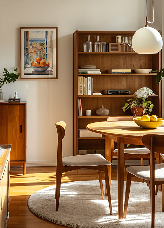Poster mit orangefarbener Schale im Fenster